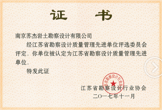 江蘇省勘察設(shè)計質(zhì)量先進(jìn)單位